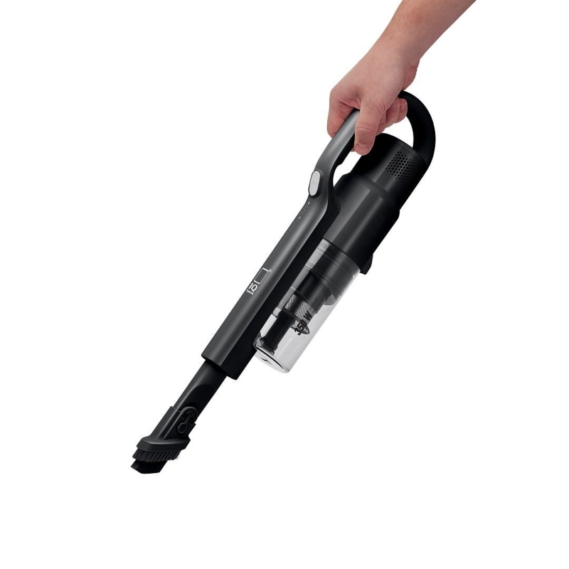 Элегантный чёрный корпус из качественного пластика и металла органично впишется в любой интерьер. Настенное крепление позволяет удобно хранить пылесос, экономя место. Индикатор уровня заряда поможет всегда быть готовым к уборке.
